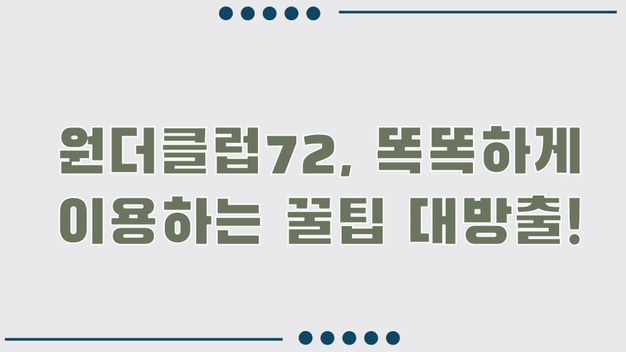 원더클럽72를 더욱 알차게 즐길 수 있는 몇 가지 꿀팁을 소개합니다.